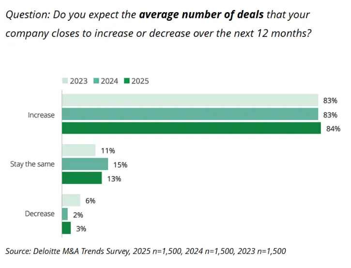 More than 80% of dealmakers surveyed expect to close more deals with greater value in 2026, with strategic acquirers appearing particularly active in sectors where operational integration may drive value.